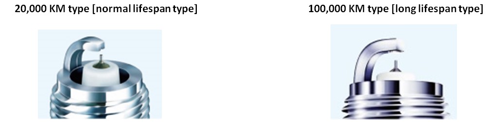 Not all iridium spark plugs are the long-life type, there are also some that have the same lifespan as a normal spark plug: 20,000 KM (light automobiles: 10,000 KM, motorcycles: 5,000 KM).