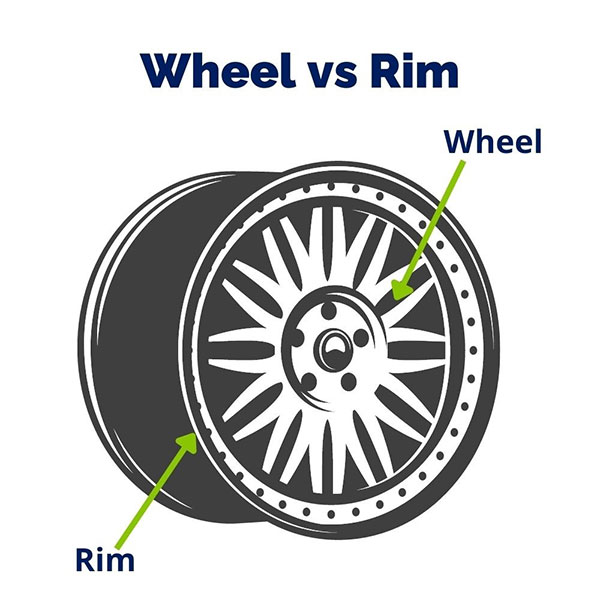 Even though rims and wheels are often used interchangeably, they refer to different things. Wheels have rims as part of them. As opposed to the rim, which consists of the outermost edges on each side of the wheel, the wheel consists of the whole metal assembly.
